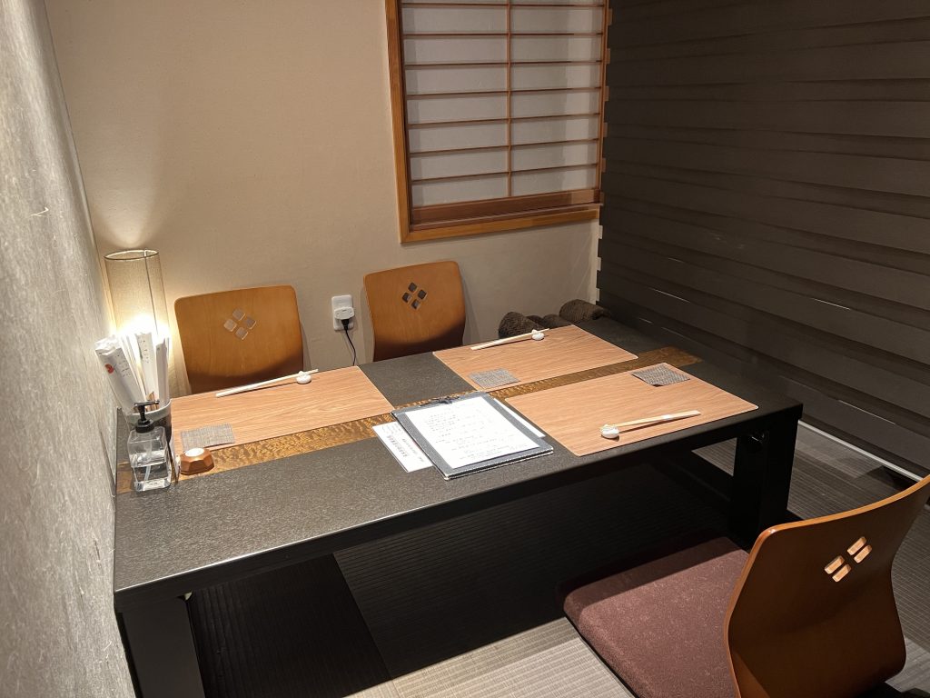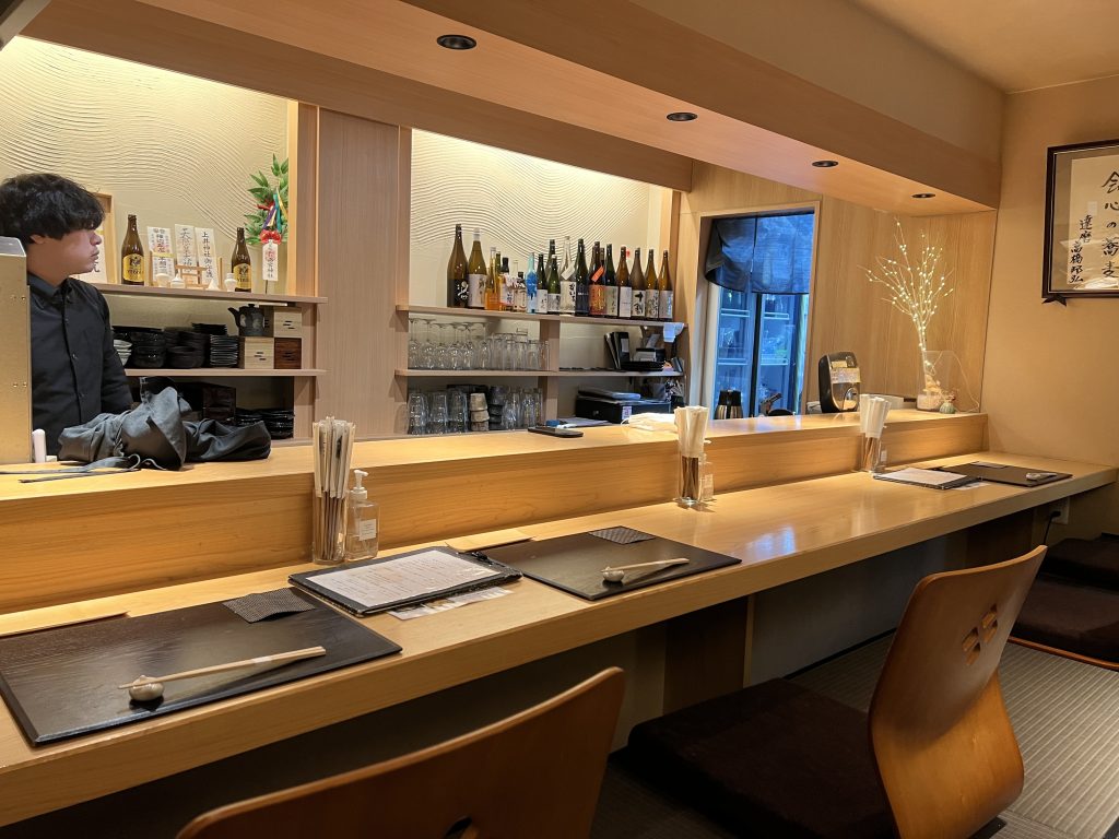 贅沢な造でチョット奥まったは入口店主が女性とあって、お洒落な雰囲気。 中に入るとすぐにゆったりと座ることが出来るカウンターには4席・その奥には座敷が2部屋、いずれも広い間隔で落ち着いてお食事が出来ます。