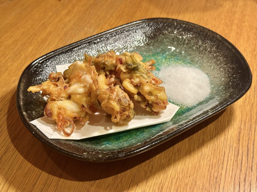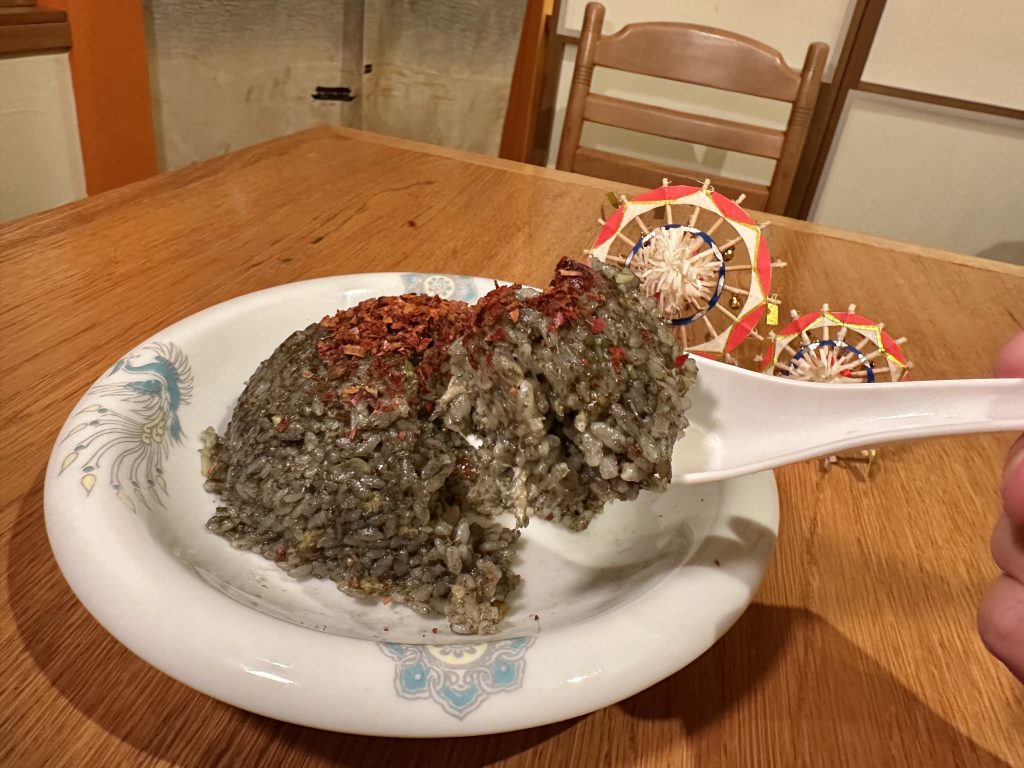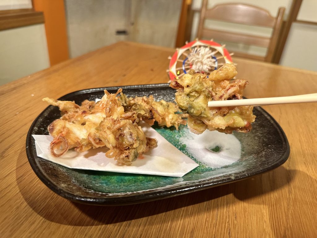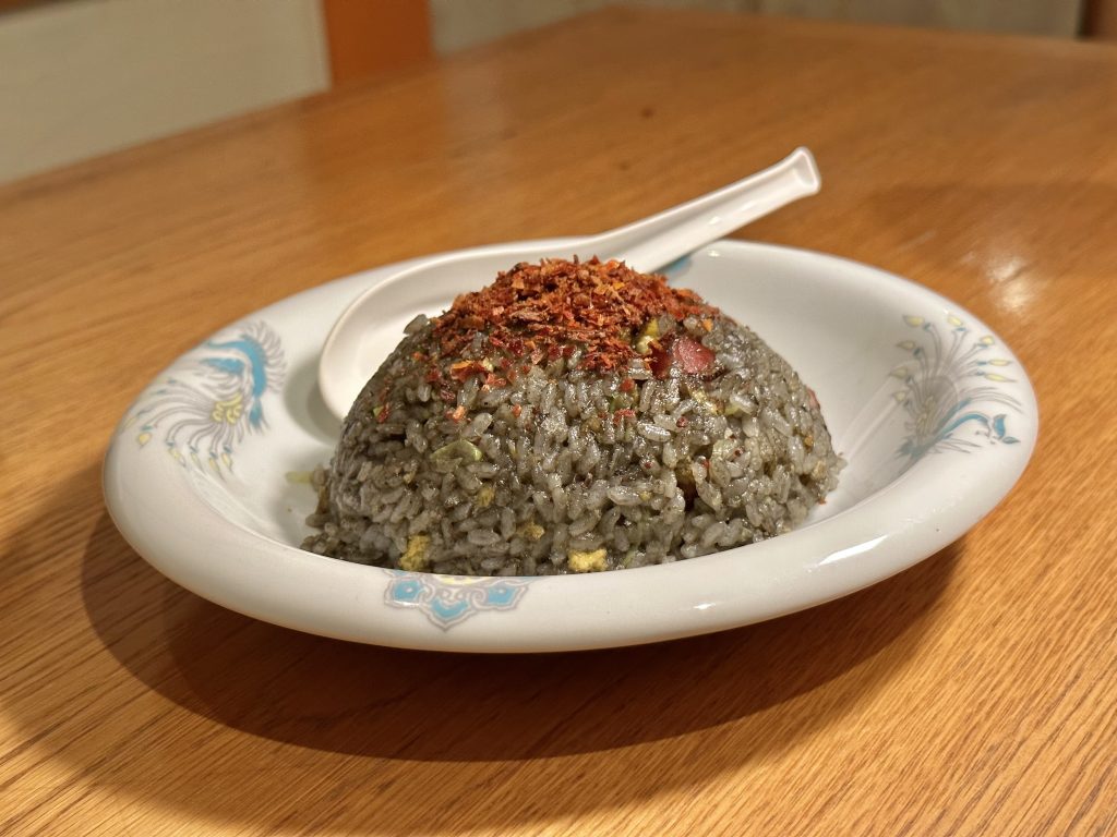 白いかとホップのかき揚げ・ガーリック炭墨チャーハン