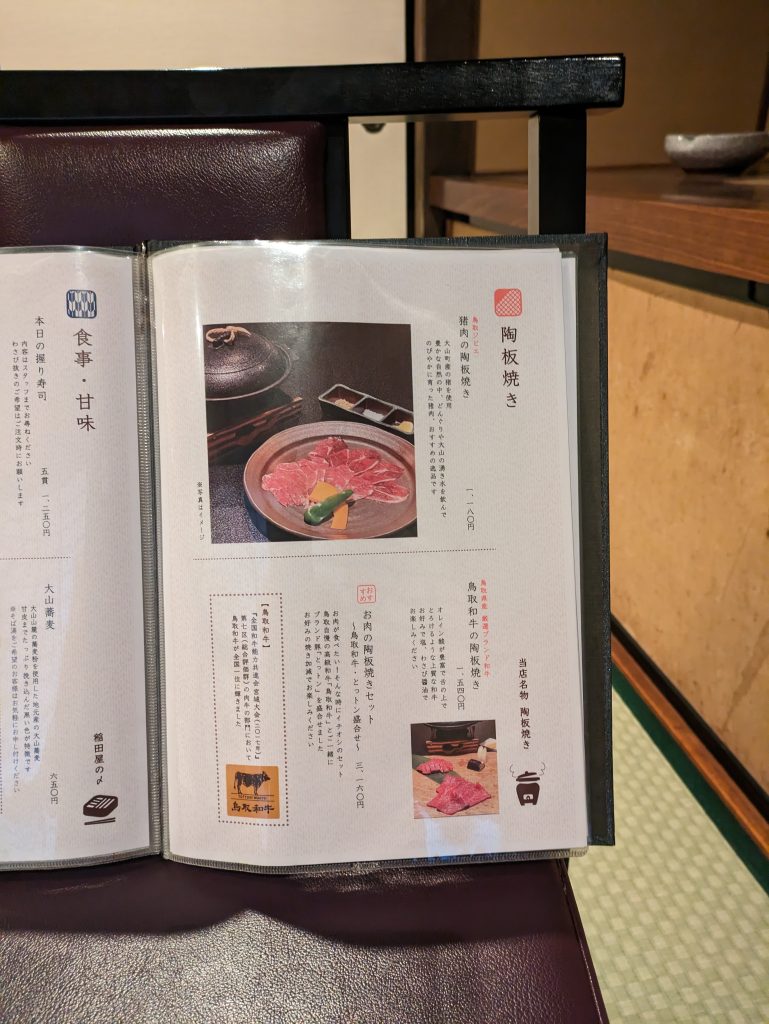 ○鳥取和牛陶板焼き……………1540円(税込み)