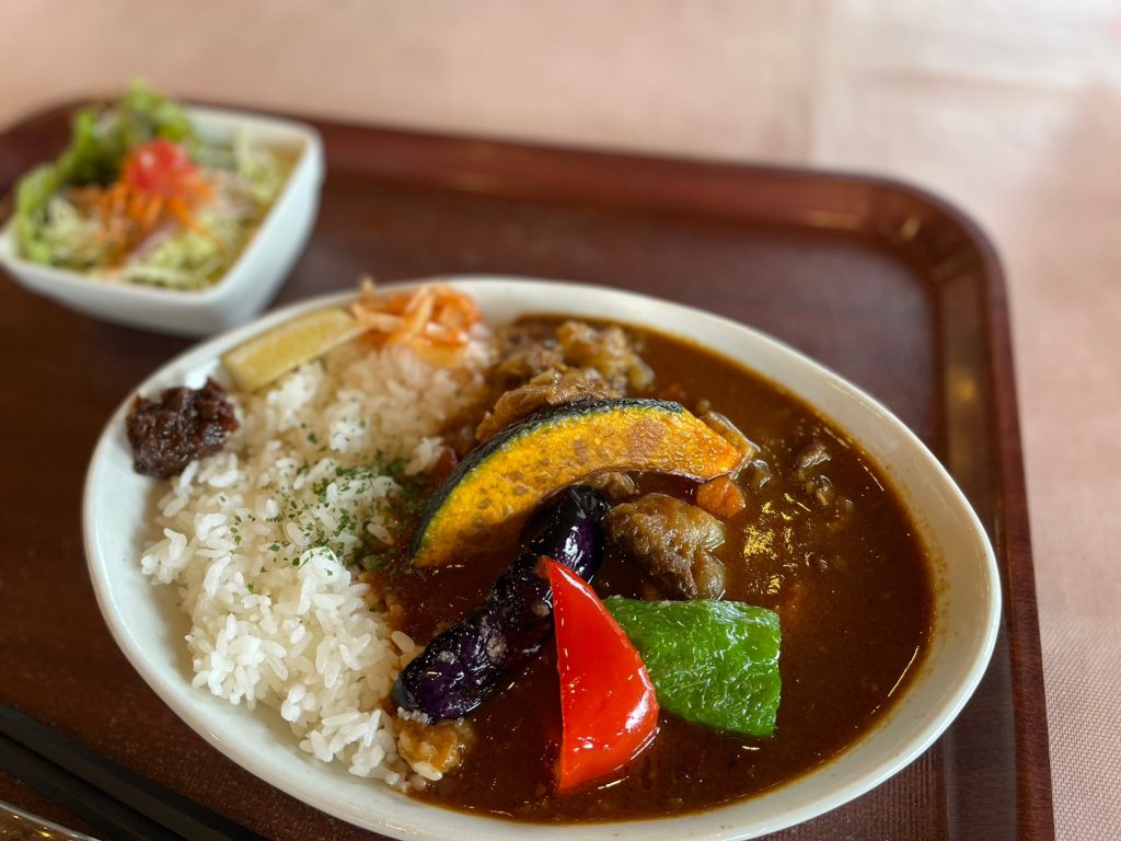鳥取県の特産品、白ネギや椎茸が使用された「海老のココナッツミルクカレー」は、一口いただくと、野菜の甘みと続くカレーのスパイシーな風味が見事に調和し、口の中いっぱいに広がる美味しさに感動しました。