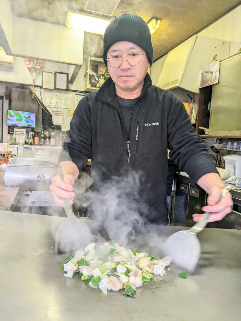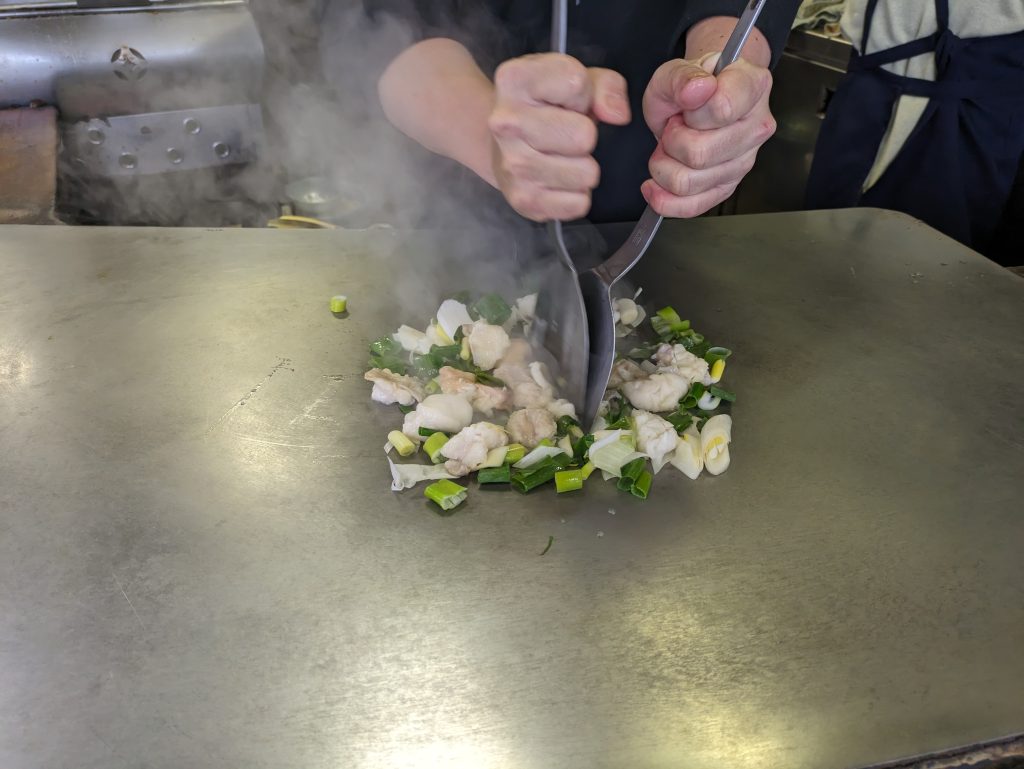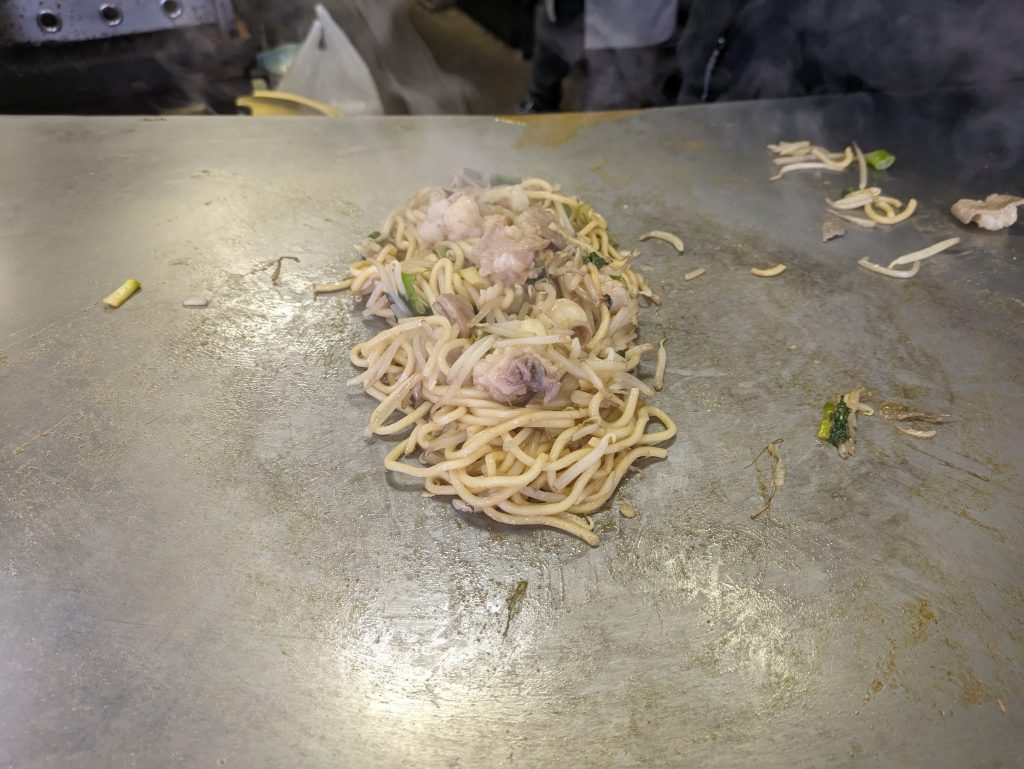 大きな鉄板で丁寧に調理されたホルモン焼きそばは鳥取県産のホルモンがふっくらプリプリで麺はもちもち白ねぎともやしの食感もしっかり残っていて楽しいです♪